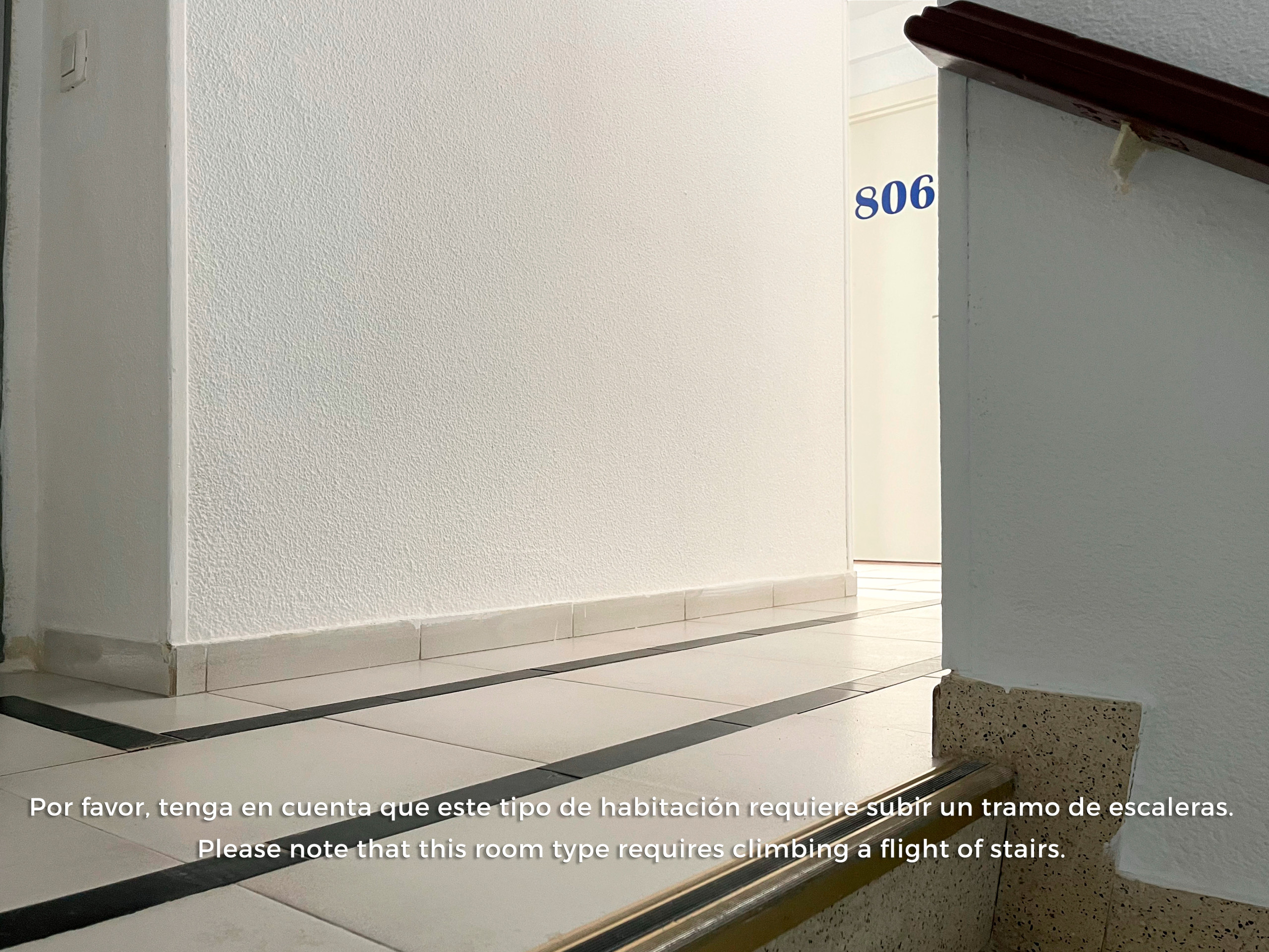 Esta habitación doble en el Hotel Flats Friends Mar Blau se encuentra en el octavo piso del edificio y dispone de una amplia terraza privada con vistas de la ciudad. Tiene dos camas individuales, televisión con canales internacionales, una caja fuerte y un baño con ducha completamente nuevo. Además, hay wifi gratuito en todo el establecimiento y aire acondicionado. Por favor, tenga en cuenta que el ascensor solo llega hasta la séptima planta y hay que subir un tramo de escaleras.