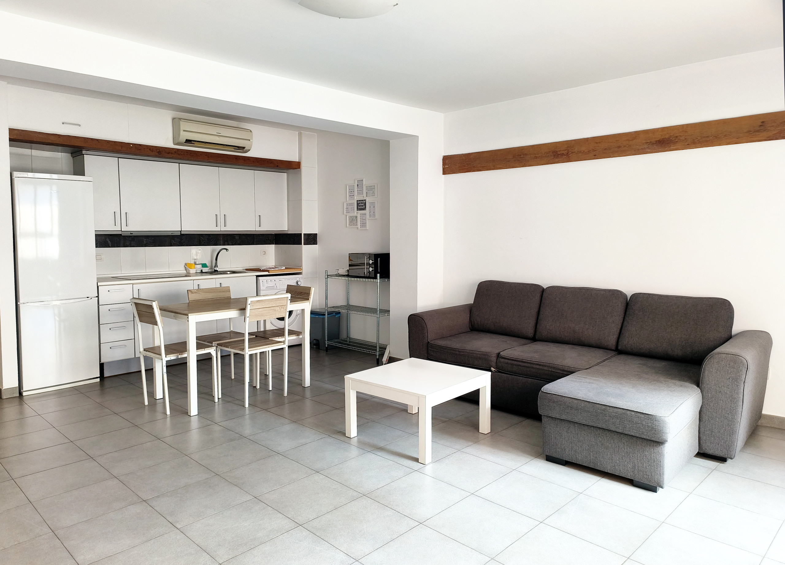 Flats Friends Tetuan combines modern decor with original beamed ceilings and exposed stone and brick walls. It is fully furnished to accommodate 4 people with a double bed in the room and a sofa bed in the living room, with cotton sheets and towels included in the price, an open kitchen with everything you need and a full bathroom.